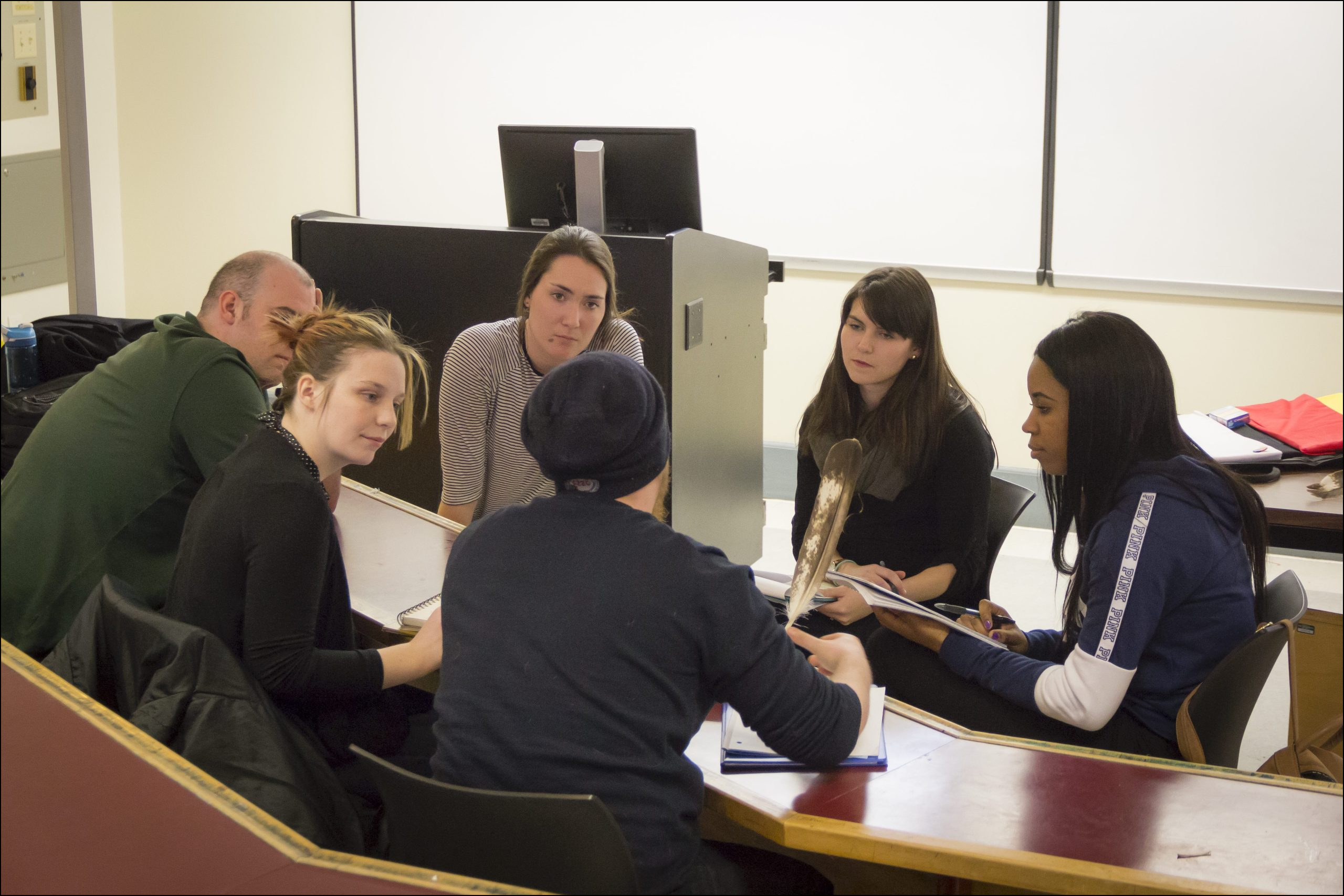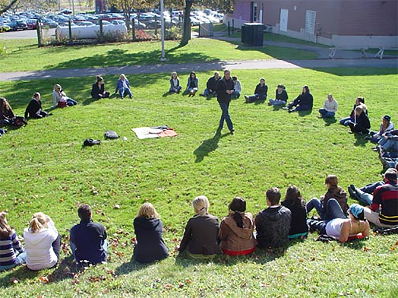 Given this relational foundation as a peoples, and the importance we place on relationality and its practice, it should not come as any surprise then that nothing begins before getting to know one another, and the sharing circle is the perfect forum to get to know one another. We take time to hear each other’s story and honour this connectedness as a way to open new relations and pathways, especially in this learning and self-discovery journey. I often use the sharing circle to explore different topics within class — each person sharing while they hold the sacred eagle feather, as shown in Figure 3.